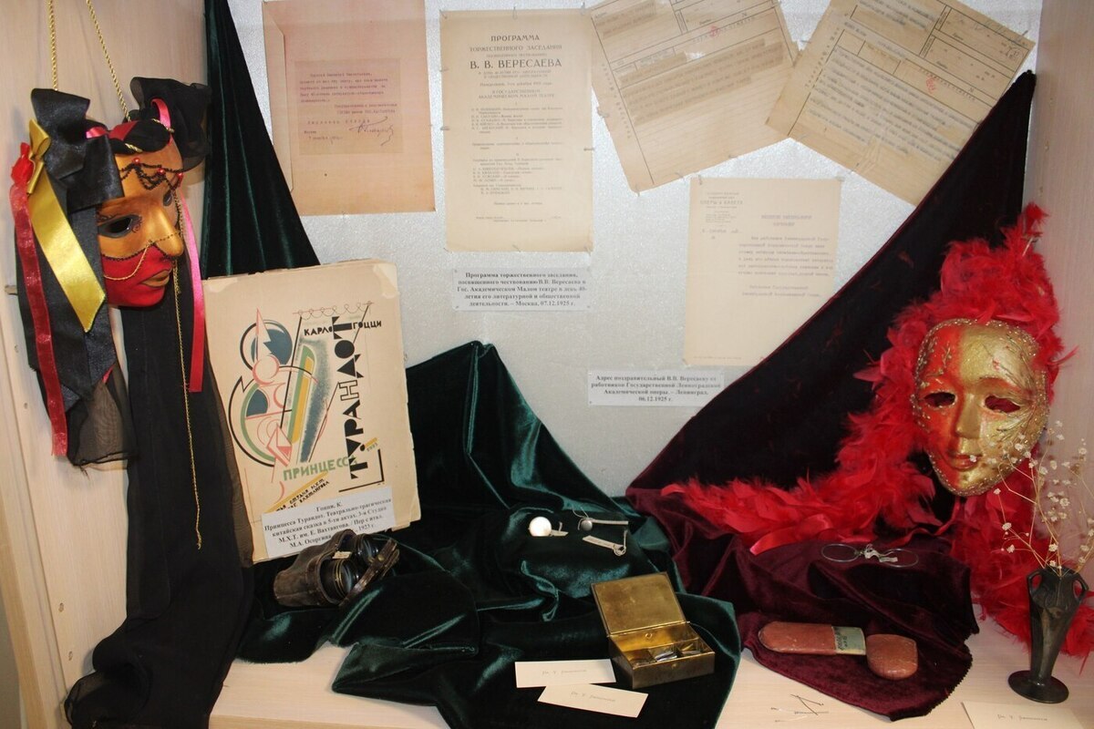 На выставке представлены уникальные материалы, имеющие большую литературно-историческую и культурную ценность. Посетители увидят поздравительные адреса и открытки, телеграммы и письма от различных литературных и общественных организаций, книги с автографами от дарителей, а также личные вещи В.В. Вересаева. Экспонаты из фондов музея дополнены работами тульской мастерицы Екатерины Зерновой. Созданные ею маски органично вписались в раздел, посвященный поздравлениям от артистов и театральных деятелей.