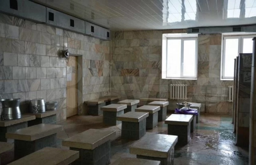 Фотографии объекта, опубликованные в объявлении, показывают, что внутри здание нуждается в капитальном ремонте: в некоторых помещениях обрушены потолки и есть проблемы с полом. В целом обстановка внутри устарела и не соответствует современным стандартам.