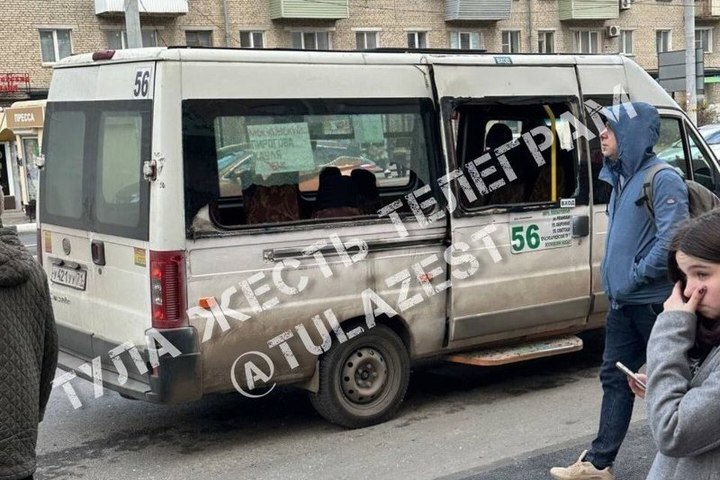 В Туле не смогли разъехаться автобус и маршрутка. Об этом сообщает Telegram-канал «Тула. Жесть».