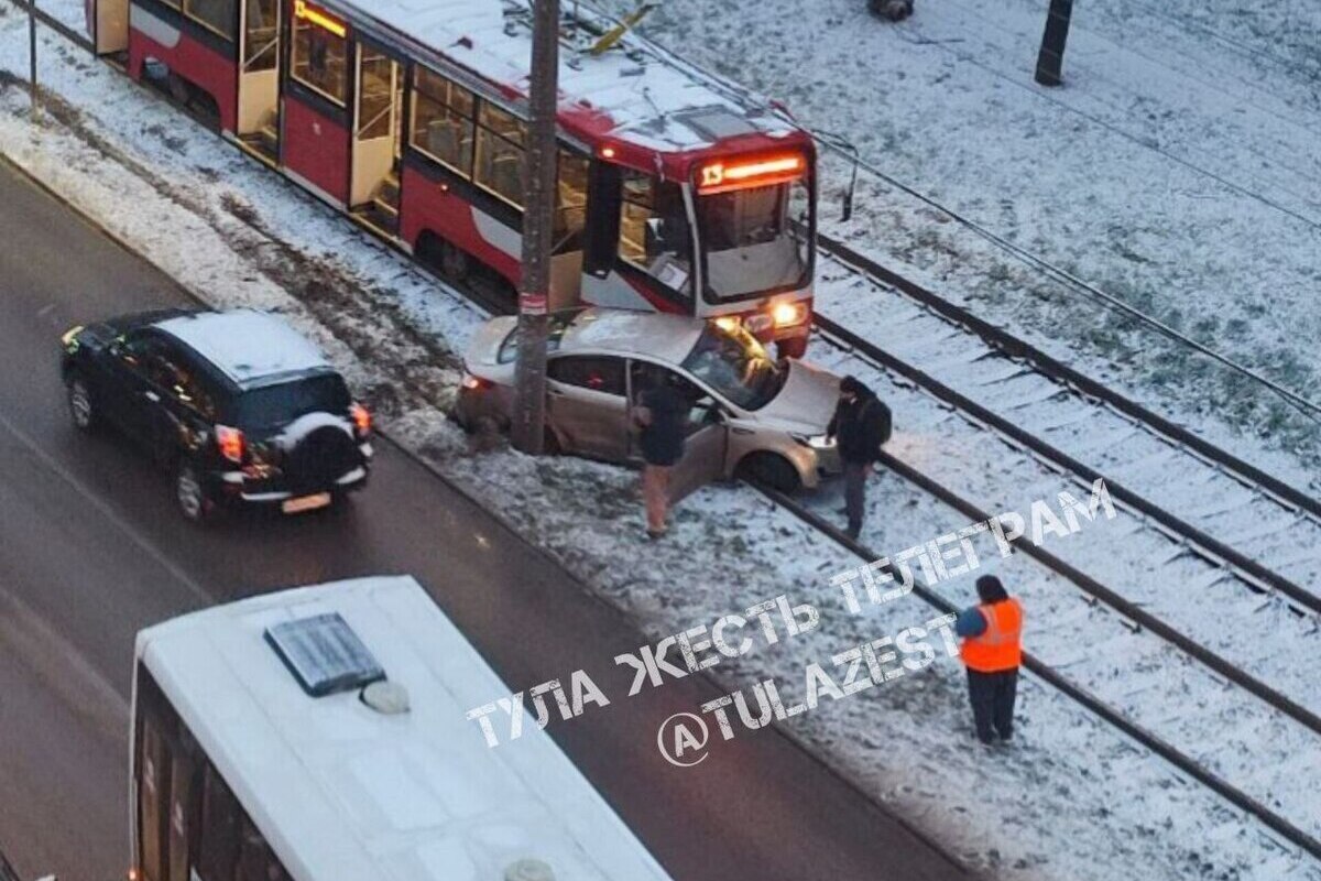 Как сообщает телеграм-канал «Тула.жесть», сегодня на улице Станиславского произошло серьёзное дорожно-транспортное происшествие. По предварительным данным, легковой автомобиль выехал на трамвайные пути и столкнулся с рельсовым транспортом. Кадры, появившиеся в сети, показывают легковушку, оказавшуюся в опасной близости от трамвая.