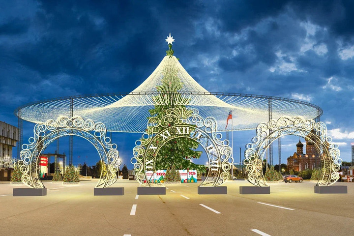 К Новому году площадь Ленина также преобразится: здесь установят Губернский каток, световой фонтанный комплекс, арт-объект «Самовар», ярмарочные домики и сцену с мультимедийным экраном. Праздничное оформление дополнят световые арки и декоративные деревья.