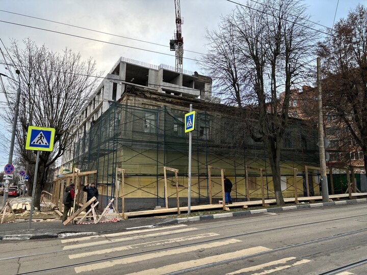 Насколько можно понять, работы начались сегодня, здание уже обтянуто строительной сеткой, а работники, которые находятся у доходного дома, монтируют временный обход. Получается, что коммерсант Дмитрий Белоглазов который взял дом в аренду, уже представил в администрацию Тулы проект его реконструкции, и этот проект был согласован, потому что иначе никто бы не смог начать работу.