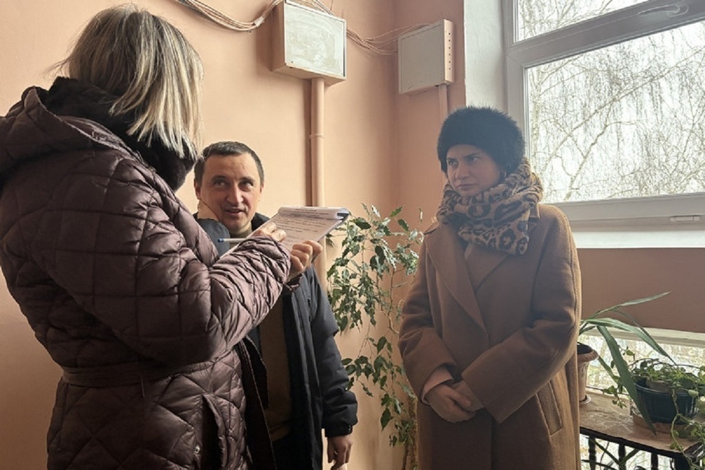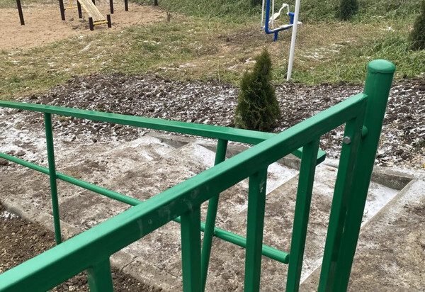 Совместно с жителями, подрядной организацией и службой единого заказчика депутаты осмотрели лестничный сход с поручнем.
