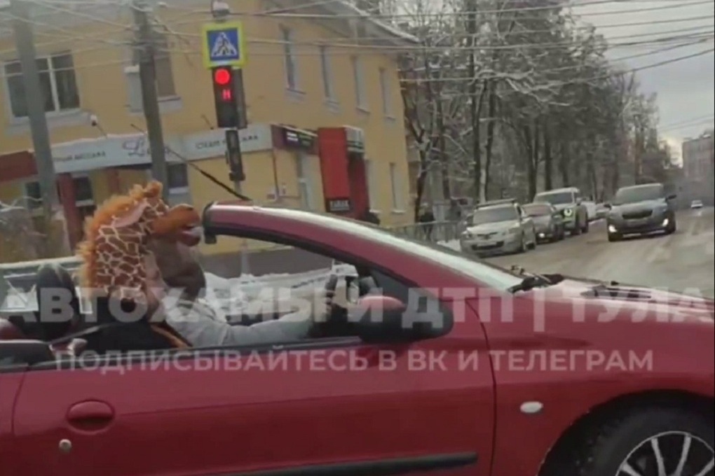 В последний день уходящего года по Туле на кабриолете, несмотря на значительную минусовую температуры и снег, прокатились медведь и жираф. Информация об этом в настоящее время распространяется в социальных сетях, деталями забавного инцидента поделился, в частности, telegram-канал «Автохамы и ДТП. Тула».