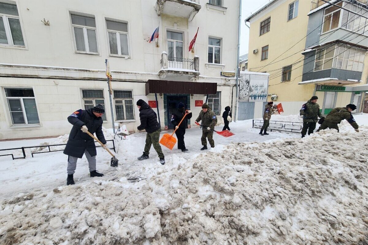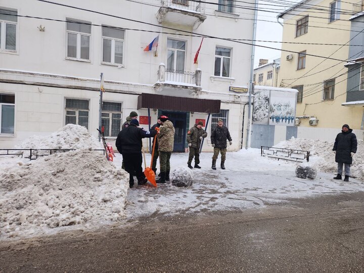 Помимо казаков, на расчистку улиц вышли сотрудники местной администрации, активисты общественных организаций и обычные жители.