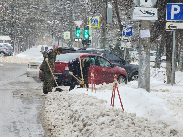Тульские казаки взялись за лопаты и расчистили тротуары на Жаворонкова