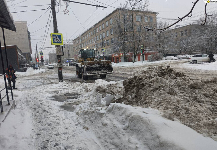 За последние сутки рабочие вывезли за пределы города больше 1220 кубометров снега. На обработку дорог потратили свыше 1300 тонн противогололедных материалов, включая реагенты и смесь песка с солью.