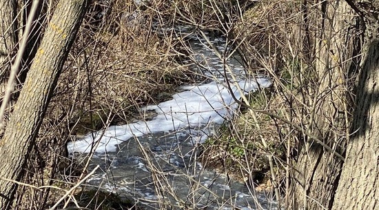 Жители деревни Маслово под Тулой запечатлели густую пену в ручье, протекающем между жилыми домами и дорогой через деревню в областной центр.